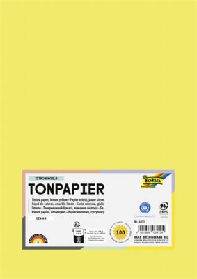 Farebný papier, A4, 130 g, 100 listov, FOLIA, citrónovo žltý