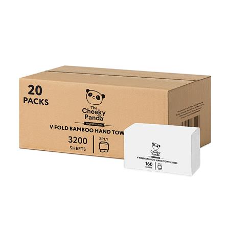 Papierové utierky, bambusové, V ohyb, 2-vrstvové, 160 listov, 21,5x22,5 cm, CHEEKY PANDA, biele